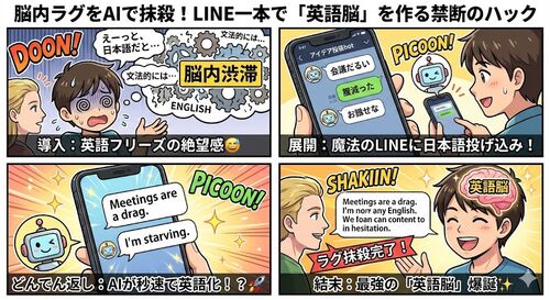 脳内渋滞、もう限界じゃない? 魔法のLINE「アイデア投稿」 翻訳じゃなく「脳の拡張」 無意味な雑談はもう古い! 自分がAIを動かす未来へ 参考文献 おすすめ商品 脳内渋滞、もう限界じゃない? 英語を話そうとした瞬間、頭の中がフリーズするあの感覚。「…